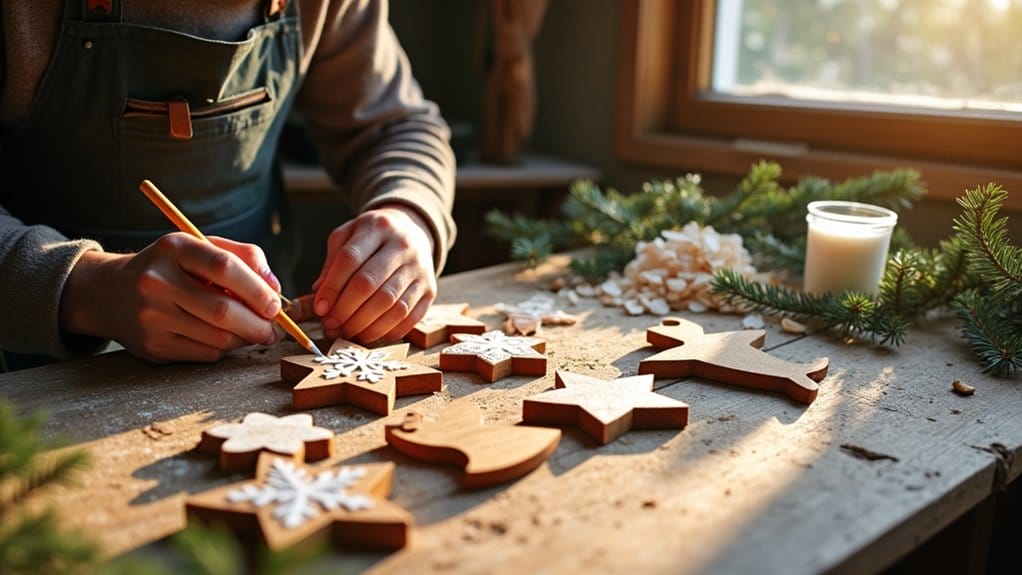 The final stage of crafting wooden Christmas decorations demands careful attention to painting and finishing techniques.