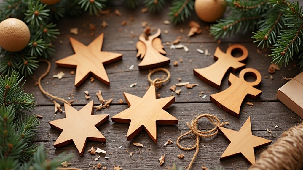 To create professional-looking wooden Christmas decorations, you’ll need quality hardwoods like maple, oak, or pine that are kiln-dried and at least 3/4 inch thick.