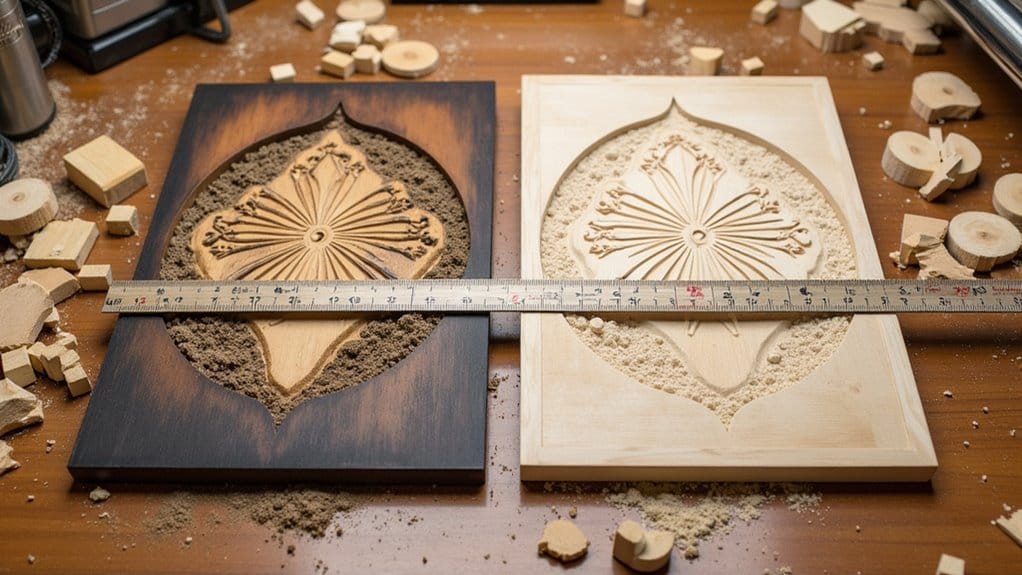 We’ll find that laser cutting excels in achieving finer details with its minimal kerf and superior minimum cut width. While CNC routers offer depth-cutting advantages, they can’t match laser’s precision for intricate internal details.