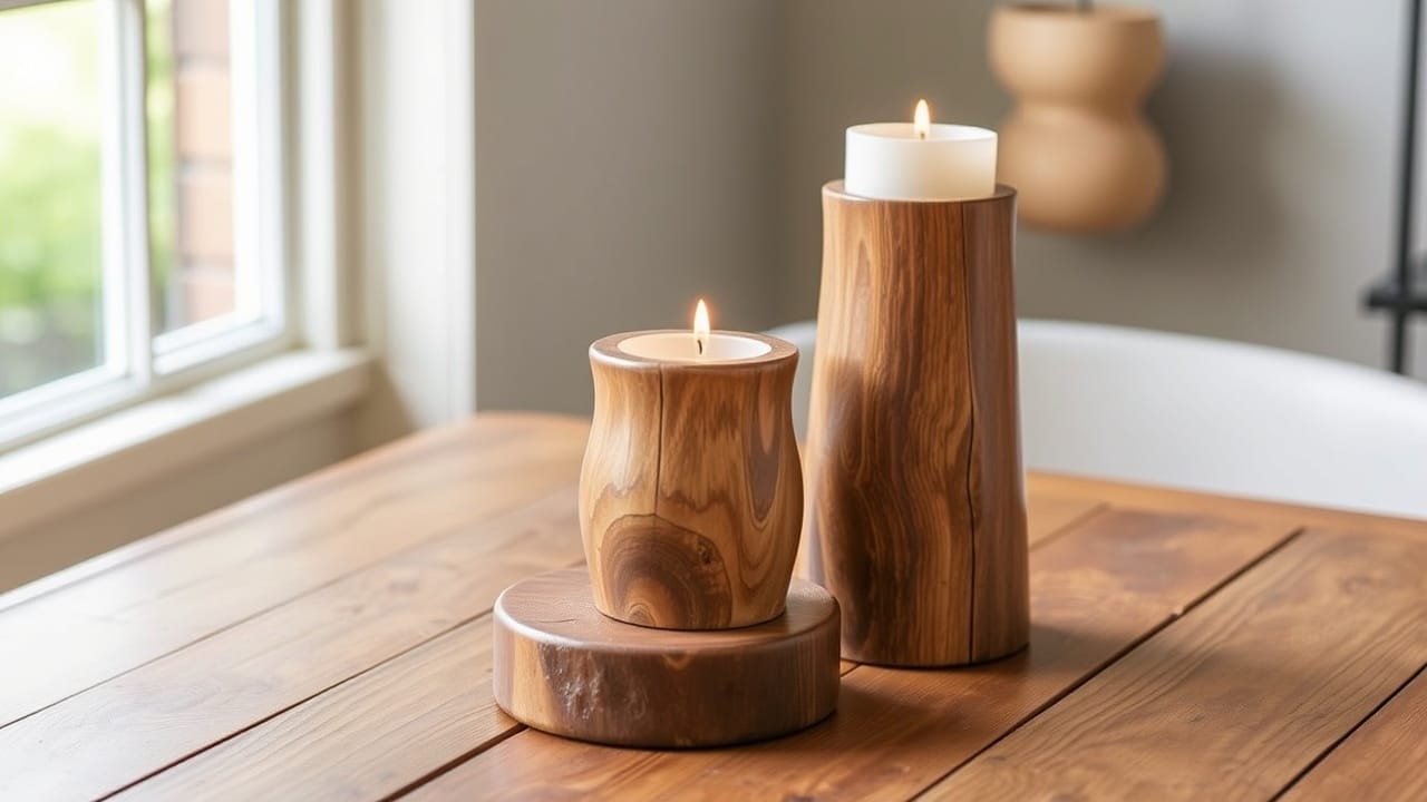 - Wooden candle holders add warmth and texture to interiors while serving both functional and decorative roles.