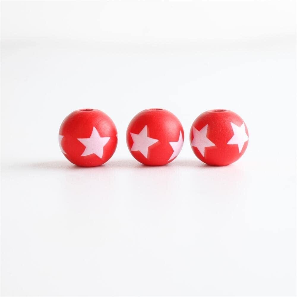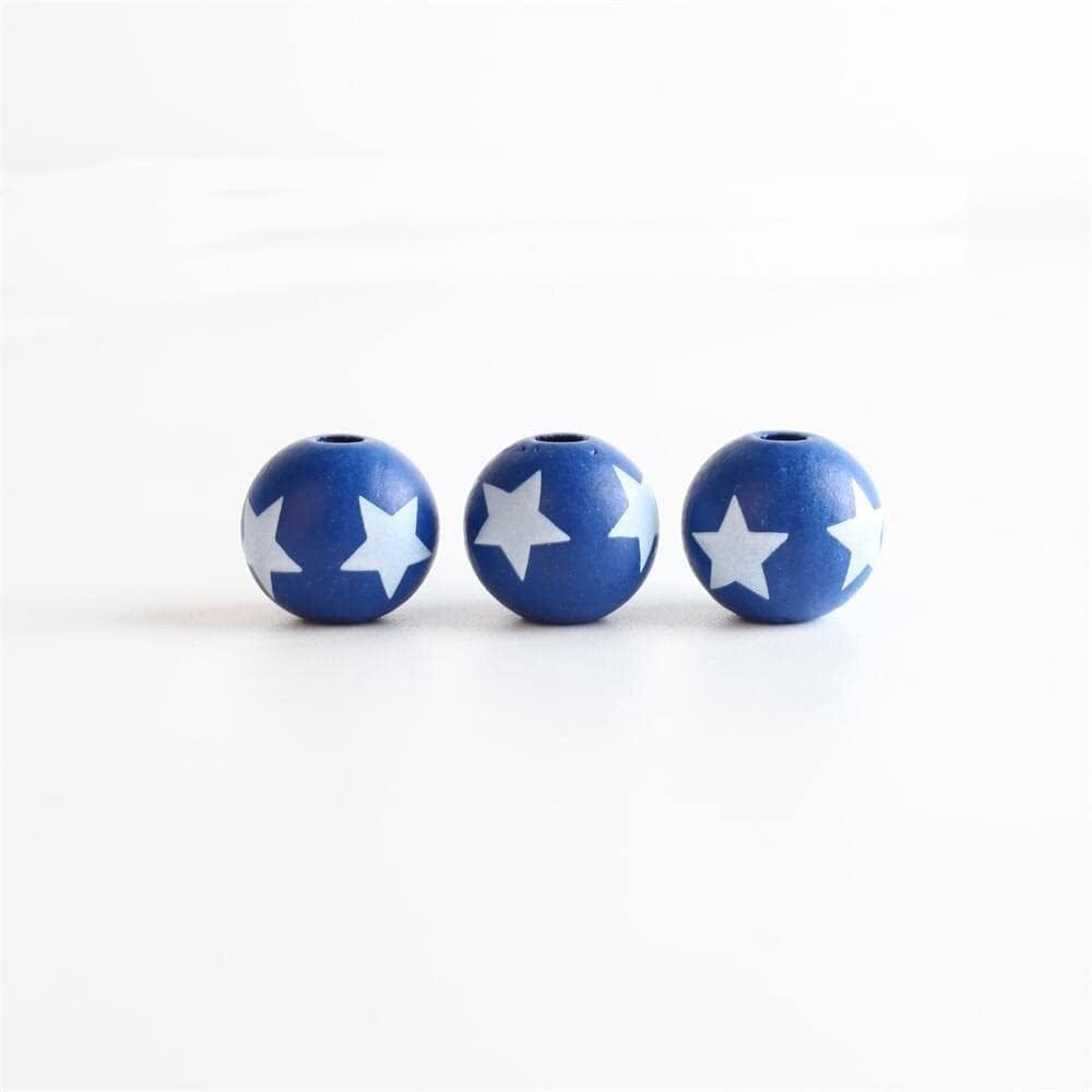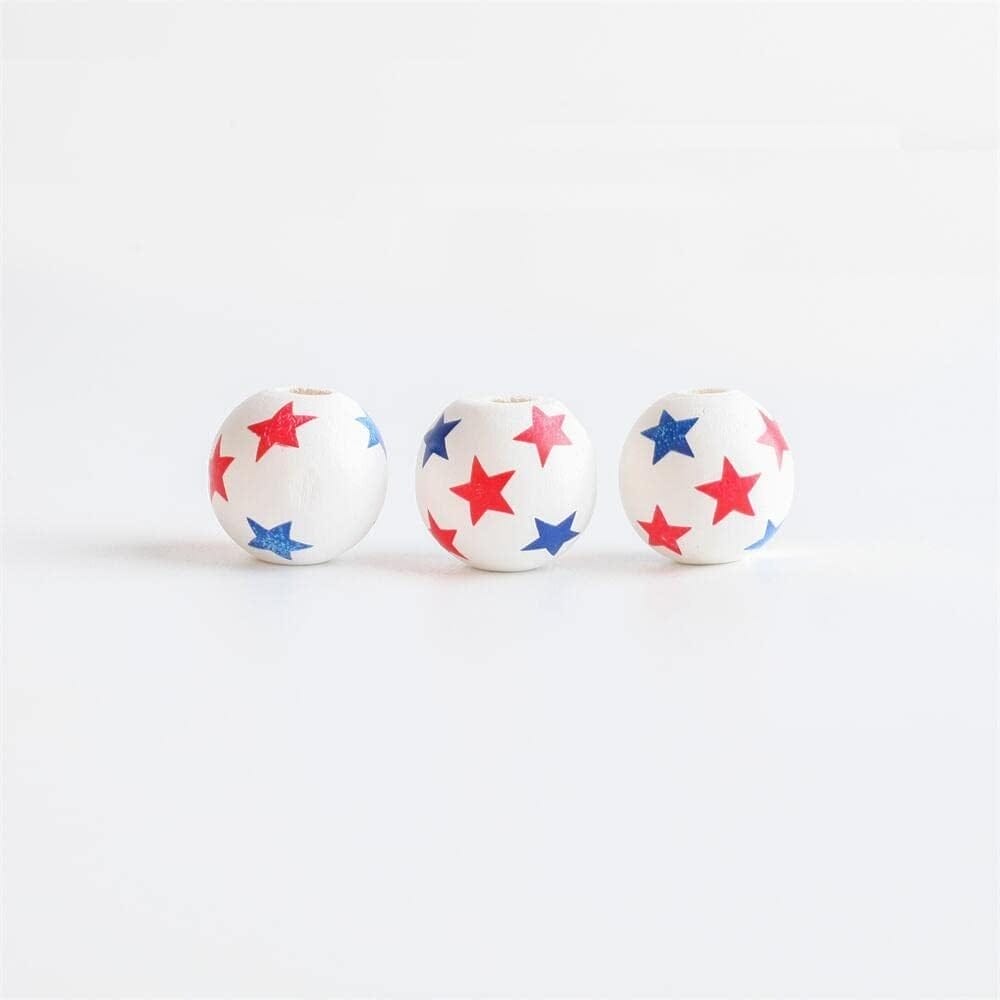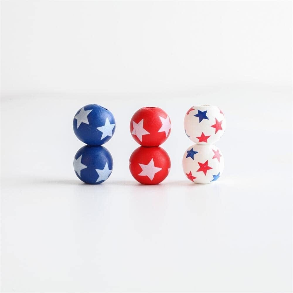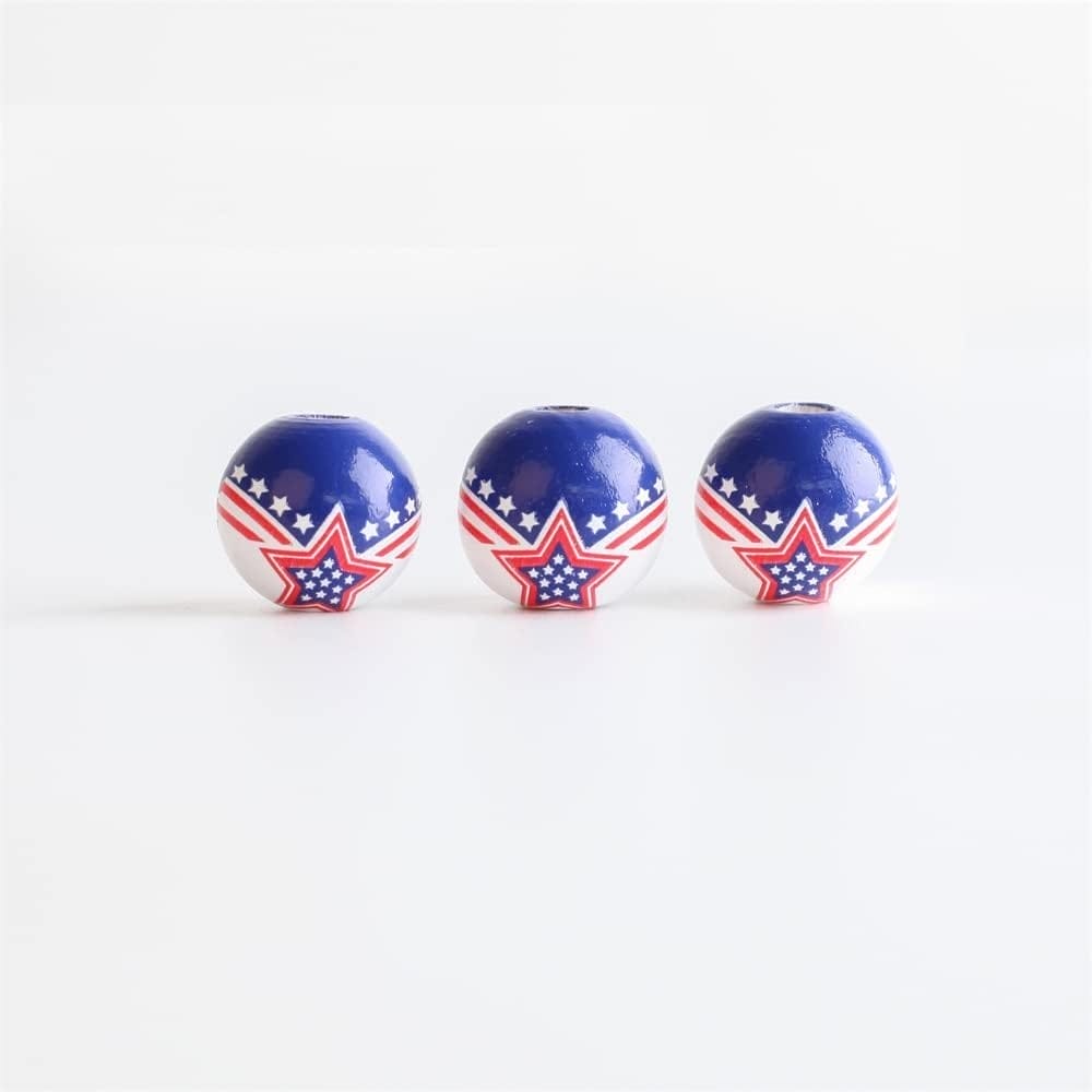 July 4th Patriotic Wooden Beads Bulk — Star Print Spacer Beads for DIY Garland & Jewelry