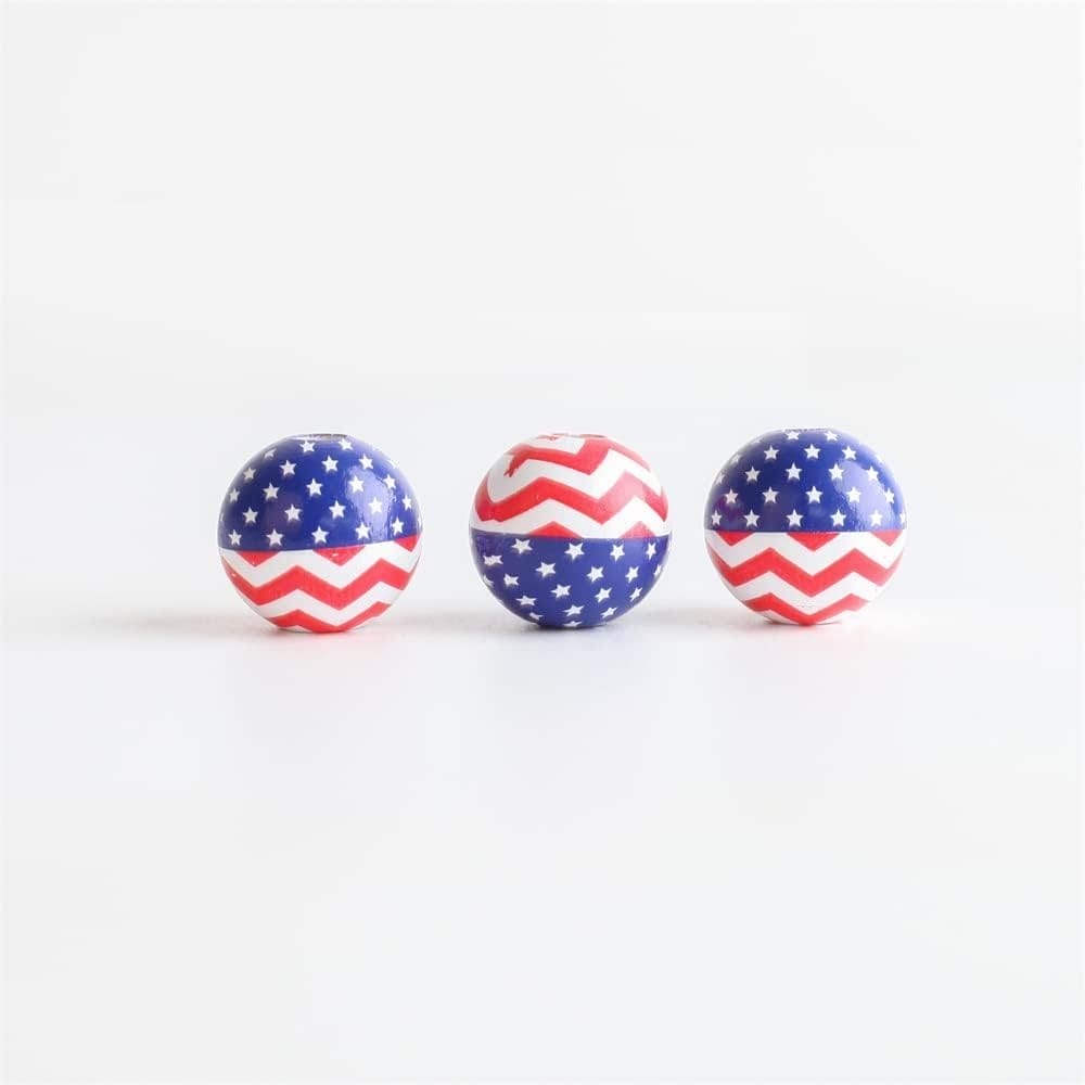 ✅ The package contains 70 pieces of wooden beads in bulk, 7 styles (10 pieces each) with patriotic July 4th star and stripe prints.